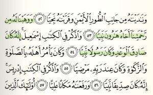 (ووهبنا له من رحمتنا أخاه هارون نبیا … واذكر في الكتاب إسماعيل إنه كان صادق الوعد … وكان عند ربه مرضيا)
