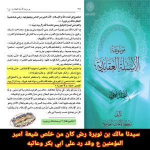 سیدنا مالک بن نویرہؓ امیرالمؤمنین حضرت علیؑ کے خاص اور مخلص شیعوں میں سے تھے، اور انہوں نے ابو بکر پر سخت اعتراض کیا اور اس پر عتاب کیا۔