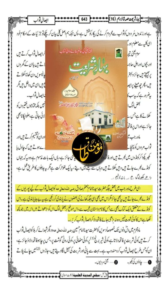 📚 [ بہار شریعت – صــ ٦۴٣ – مکتبۃ المدینہ ،کراچی ]