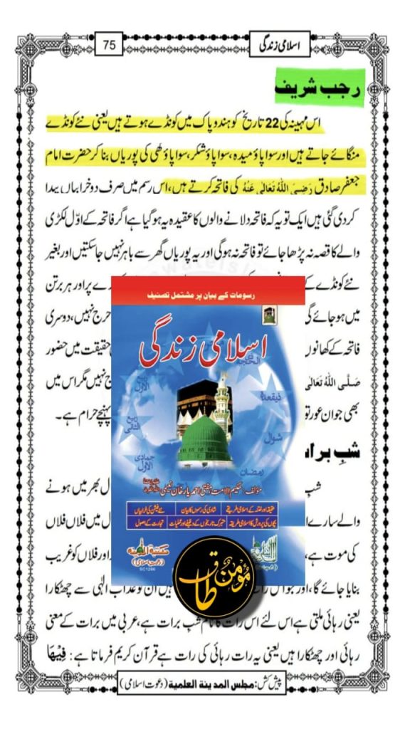 ’’رجب کے مہینہ میں ٢٢ تاریخ کو کونڈوں کی رسم بہت اچھی اور برکت والی ہے۔”